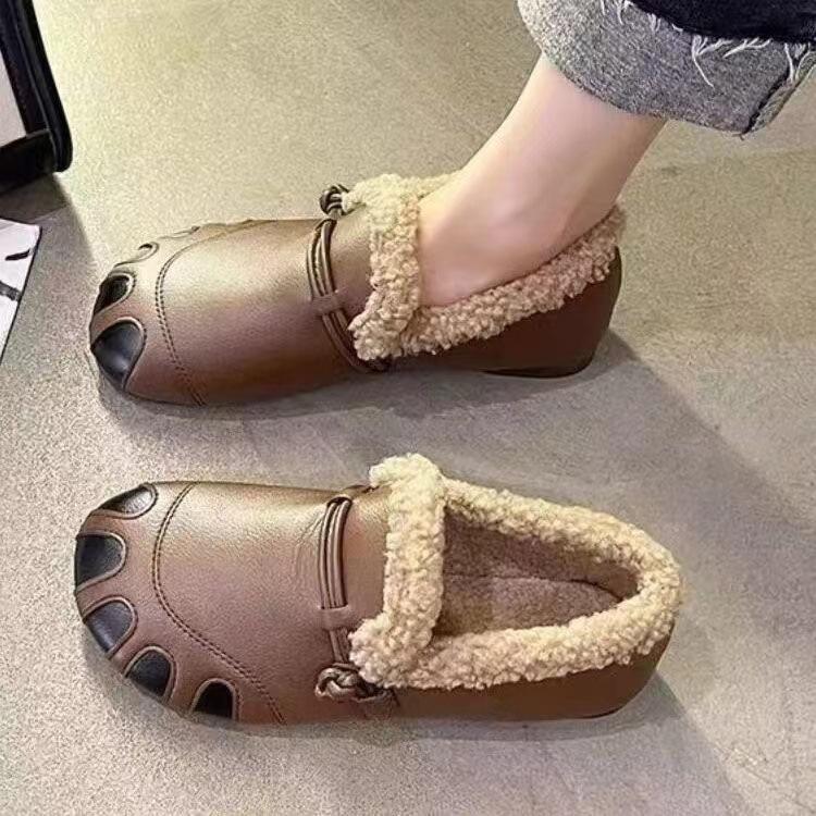 Lederoberfläche wasserdicht und Samt-Thermo-Baumwollschuhe ein Pedal verdickt Mode weiche Sohle Freizeitschuhe Frauen — günstig online bei Joom kaufen