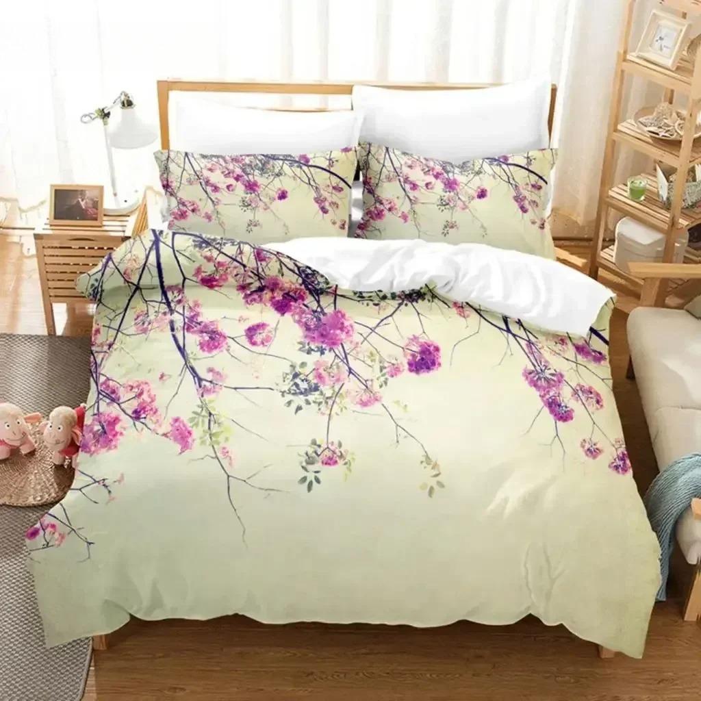 Blumen Bettbezug-Sets Doppelbett Landschaftlicher Bettbezug Einzelbett Queen Bettwäsche-Set mit Kissenbezug Polyester
