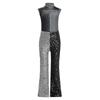 Mädchen Jazz Jumpsuit Ärmellos Mock Neck Keyhole Rücken Design Glitzernder Farbblock Pailletten Bühnenkostüm