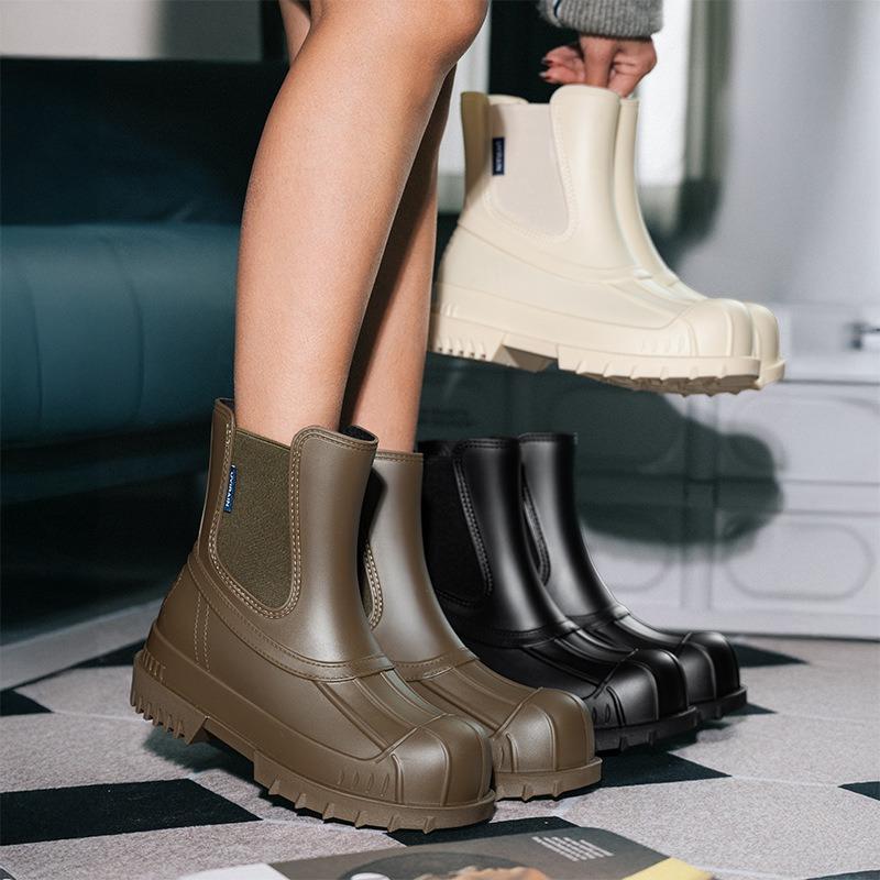 Women's fashion outer wear waterproof Martin boots medium and short tube fashion rain boots shell head thick sole elastic woven rubber shoes — günstig online bei Joom kaufen
