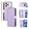 Für iPhone 17 Pro Max Hülle Reißverschluss Geldbörse Rautenmuster PU-Leder Umhänge Handyhülle
