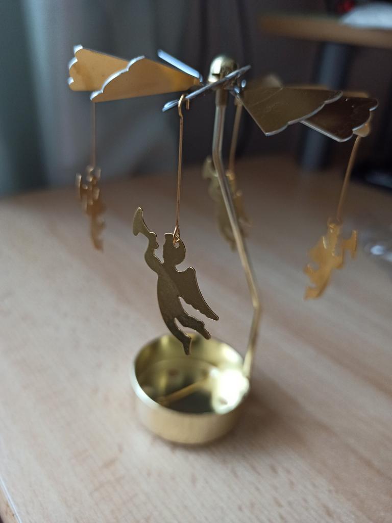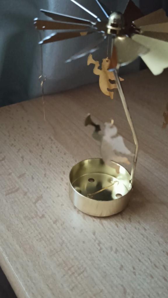 Schaffen Sie eine gemütliche Atmosphäre mit dem sanften Schein von Teelichtern, die den Karussellaufsatz beleuchten. Während es sich dreht, werden bezaubernde Schatten und flackernde Lichter umhergeworfen, die ein entspannendes Ambiente schaffen oder Zusammenkünften eine festliche Note verleihen.. Auf der Suche nach einer einzigartigen Geschenkidee? Überraschen Sie Ihre Lieben mit diesem magischen rotierenden Kerzenkarussell. Es eine durchdachte Wahl für diejenigen, die unverwechselbare Wohnkultur schätzen und Freude und Verzauberung in ihr Leben bringen.