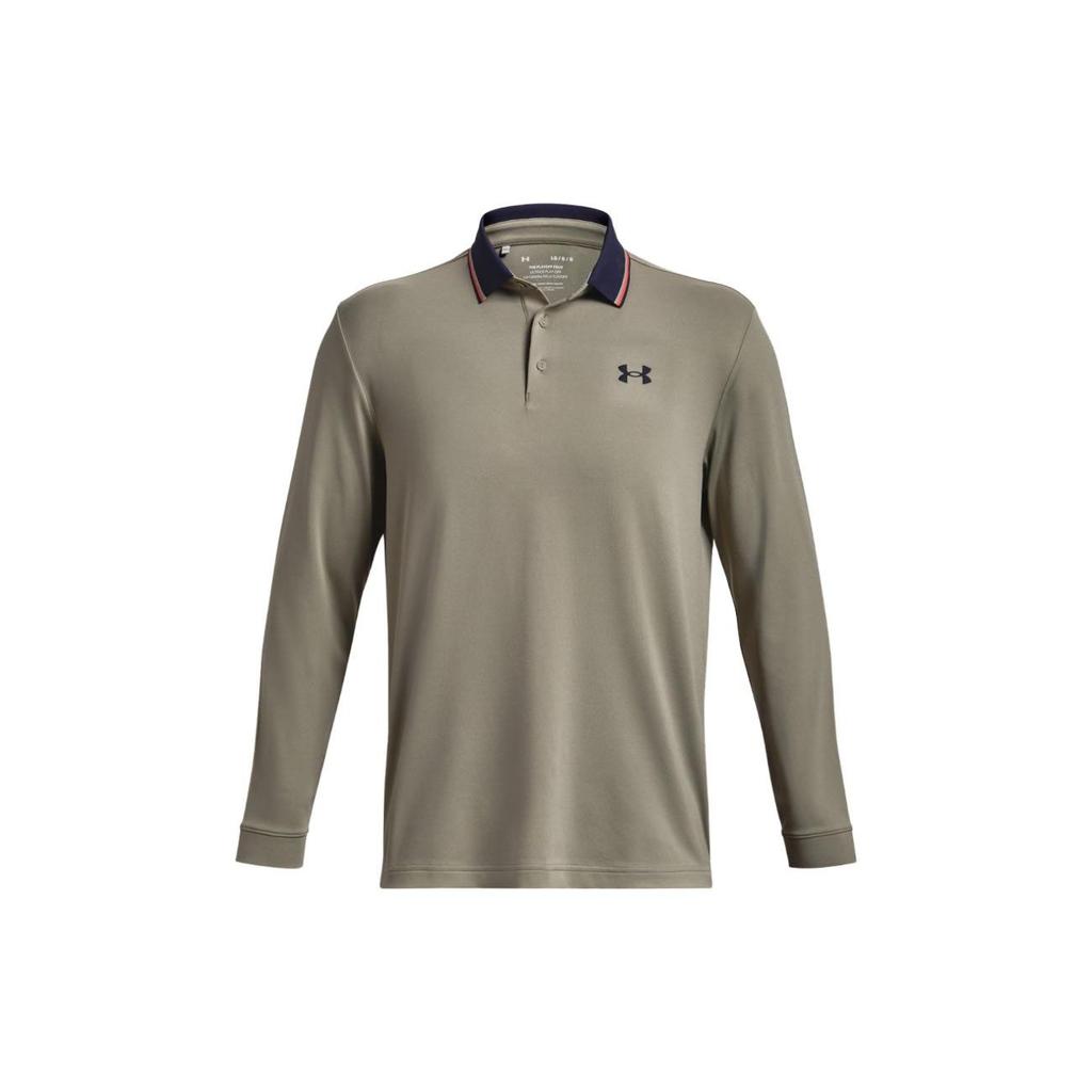 Under Armour Color Block Striped Collar Long Sleeve Polo Shirt Men tops Olive 1380786-504