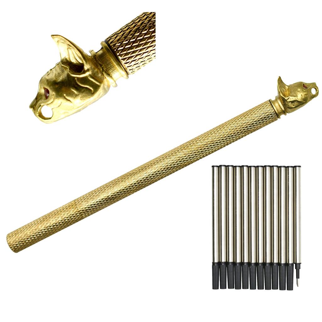 1 Messing-Kugelschreiber mit Gold a Traditionelles Neutrales Kugelschreiber-Schreibwaren Perfekt für Hochzeit und Schwarze Katzenkopf-Design Enthält eine spezielle Geschenkbeutel