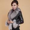 Kunstfelljacke _ Damen Kurzmantel mit Kunstfuchsfellkragen, verdickte Kunstfelljacke, Leder-Baumwolljacke