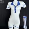 Sexy Unterwäsche Reines Verlangen Senior Turnanzug Verführung Temperament Revers gestreifter Badeanzug Farbpassender geknöpfter Einteiler