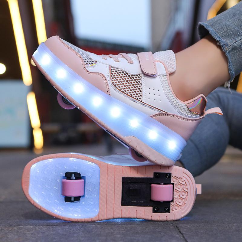 Children's Inline Skates Walking Shoes with Wheels And Lights Middle And Large Children's Retractable Flight Shoes