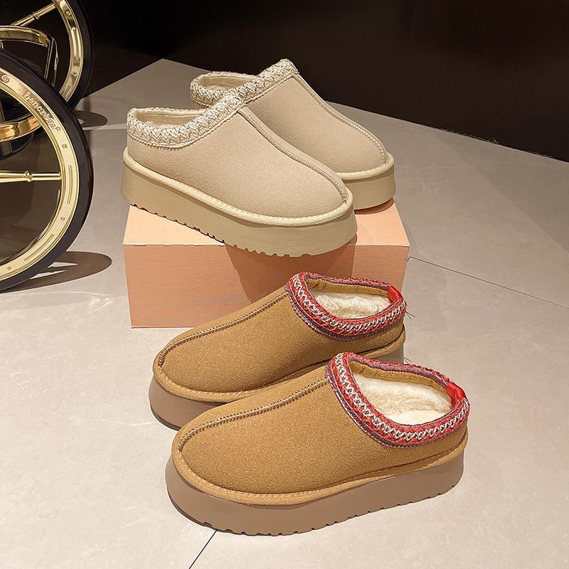 Thick-soled warm snow boots, new autumn and winter outer wear, piled fur integrated cotton shoes, women's bag head fluffy slippers — günstig online bei Joom kaufen