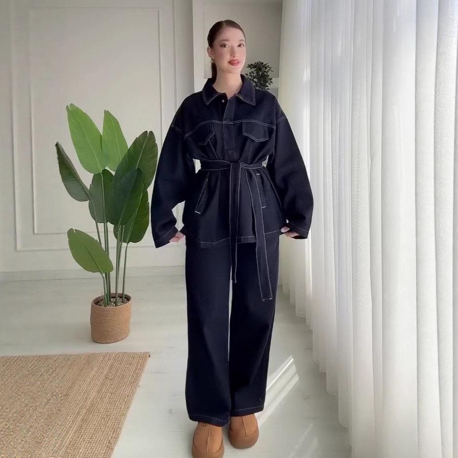 Women's Autumn Polo Collar Long Sleeve Waist-Cinch Faux Denim Casual Jumpsuit — günstig online bei Joom kaufen