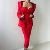 Herbst 2025 Europäisches & Amerikanisches Rotes Revers Einreihiges Hosenanzug-Set für Damen