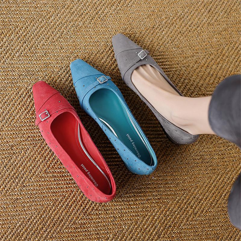 Mode Neue Frühling/Sommer Schafveloursleder Damen Pumps Schuhe für Damen Mode Nieten Eckige Zehen Loafers Schuhe Damen Niedrige Absätze Damenschuhe — günstig online bei Joom kaufen