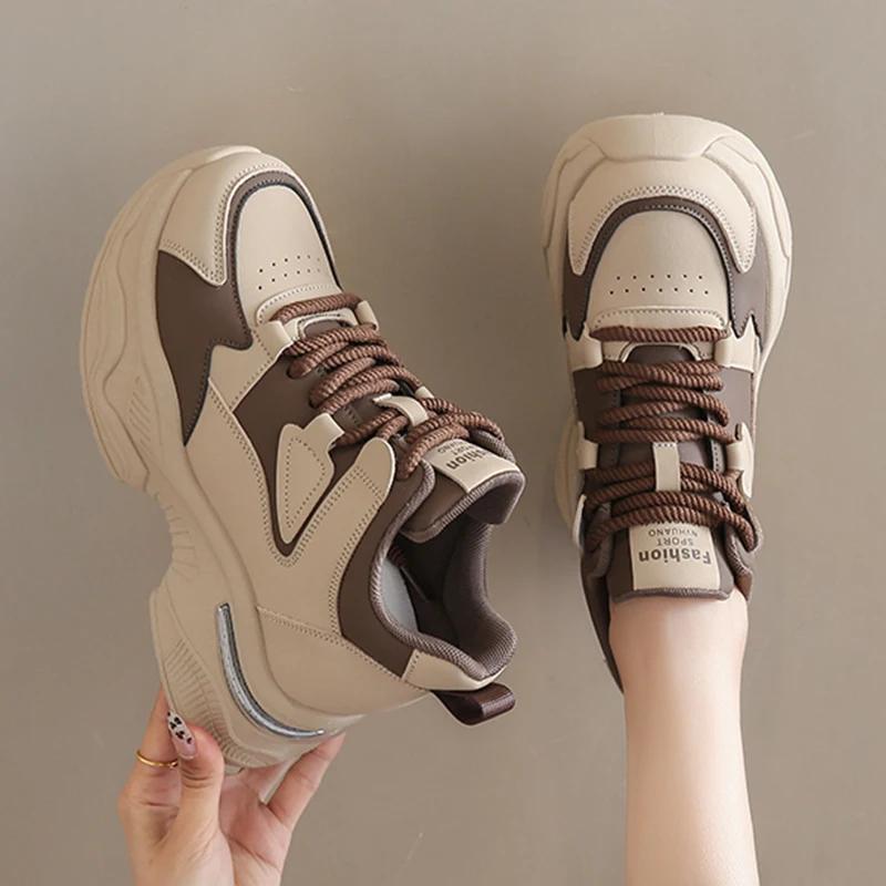 Mode Plateau Damen Sport Sneaker Schnürschuhe Dicke Sohle Vulkanisierte Schuhe Frau Frühling Herbst PU Leder Atmungsaktiv Klobige Laufschuhe — günstig online bei Joom kaufen