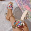 Mode Eilyken Sexy Camouflage Kristall Runde Absätze Damen Hausschuhe Sommer PVC Transparent Eckige Zehenpartie Bankett Party Pantoletten