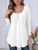 Neuer Frühlings- und Herbststil Damen einfarbig plissiert modisch lässig und vielseitig lockeres T-Shirt Oberteil