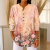 Damen Modisches Knopfkragen Langarm Weihnachtsdruck Pullover Top