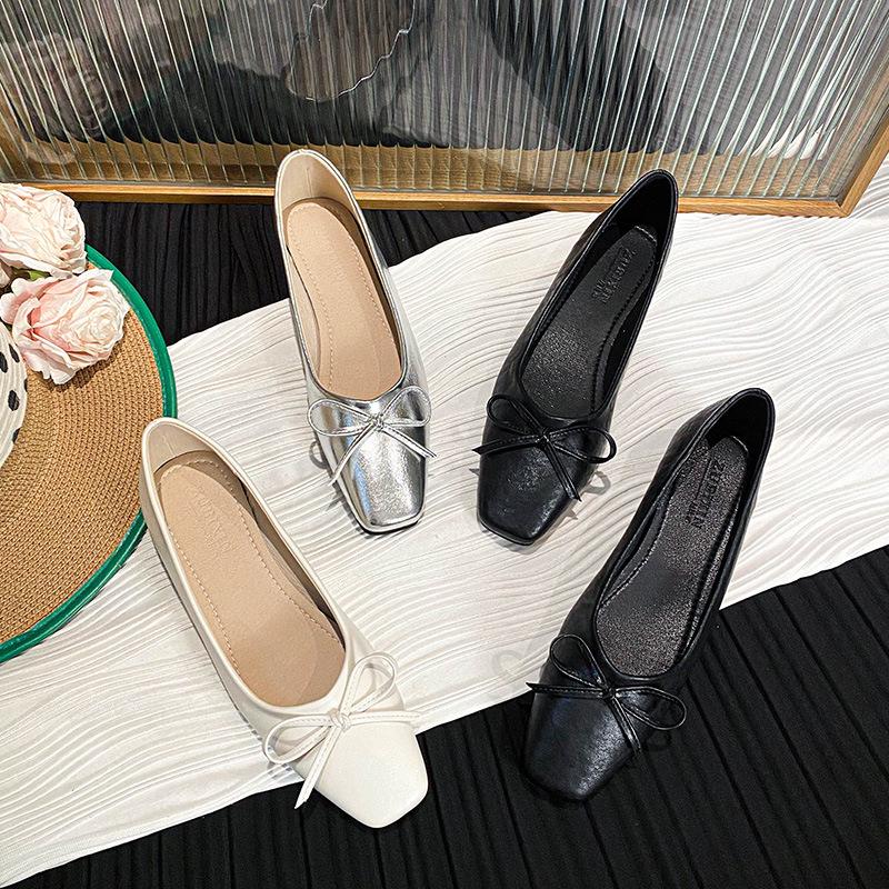Schlüpfen Sie in Eleganz mit diesen exquisiten Ballerinas im zeitlosen Mary-Jane-Design für Damen.. Inspiriert von koreanischer Mode, verfügen diese Schuhe über ein elegantes Obermaterial aus hochwertigem PU-Leder, das Langlebigkeit und ein poliertes Aussehen gewährleistet.. Das weiche Mikrofaserfutter und die Innensohle bieten außergewöhnlichen Komfort und machen sie perfekt für den ganzen Tag.. Eine robuste Gummisohle bietet hervorragende Traktion und Unterstützung, sodass Sie mit Zuversicht und Anmut gehen können.. Geschmückt mit einer charmanten silbernen Schleife, vereinen diese Ballerinas mühelos Stil und Raffinesse und machen sie zu einer vielseitigen Ergänzung für jede Garderobe.
