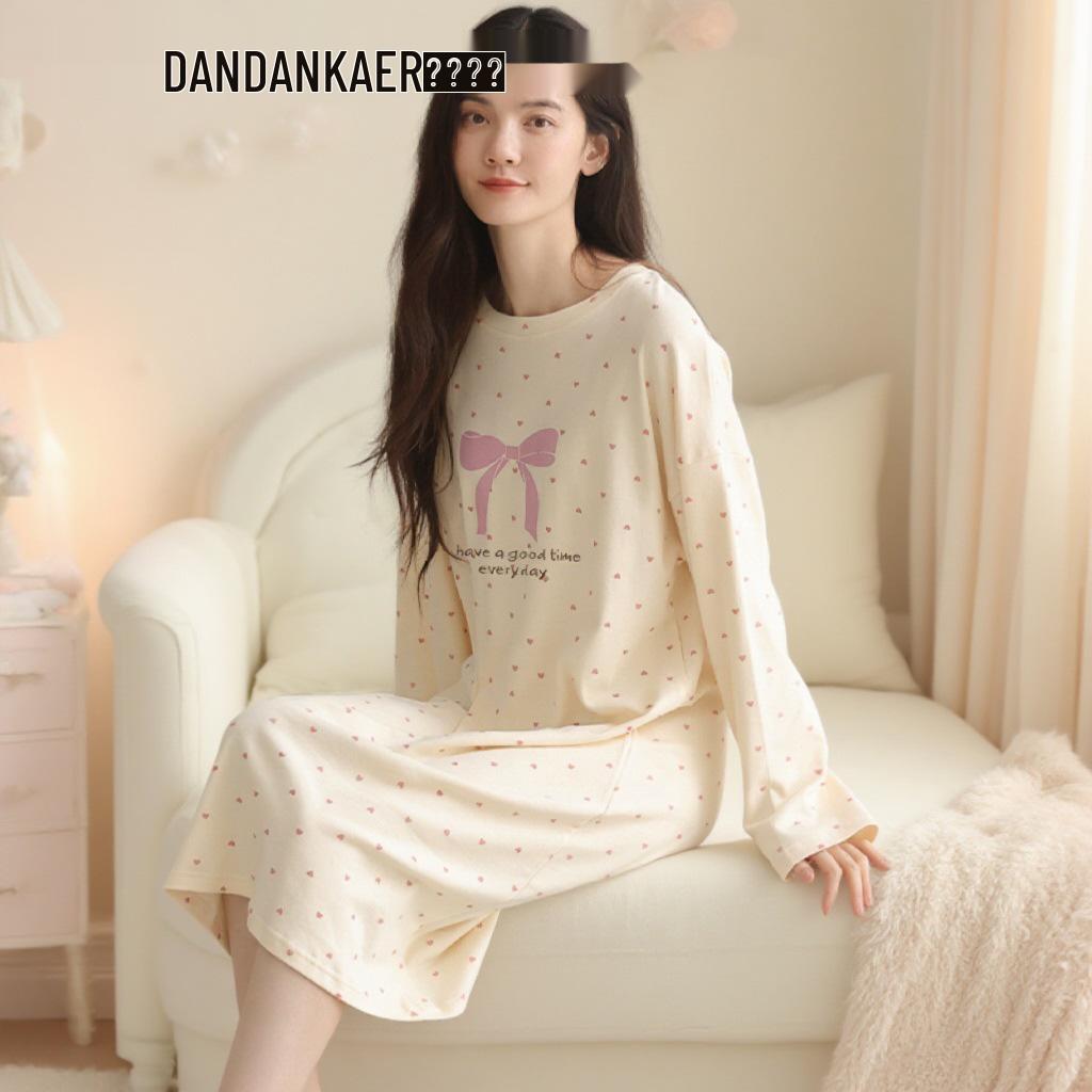 Damen Süßer Stil Langarm Mittellang Baumwoll-Nachthemd für Herbst — günstig online bei Joom kaufen