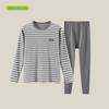 2025 Neues Teenager-Gestreiftes Warmes Fleecegefüttertes Samt- und Lycra-Baumwoll-Unterwäscheset für Herbst/Winter — günstig online bei Joom kaufen