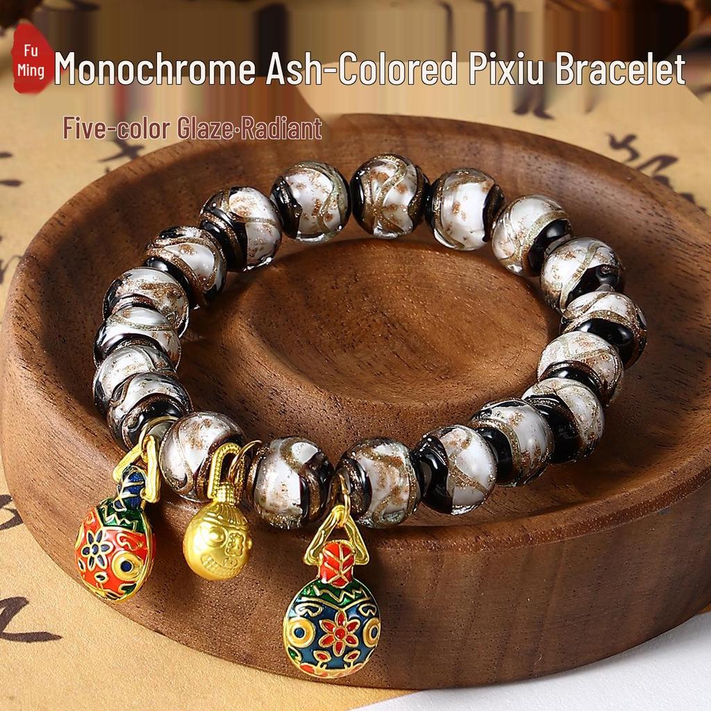 Ash Gray Pi Xiu Glass Beaded Bracelet with Gold Foil and Multicolor Beads — günstig online bei Joom kaufen