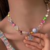Handgefertigte Retro Mais-Buntglas Herz Anhänger Halskette mit Perlen Choker für Damen