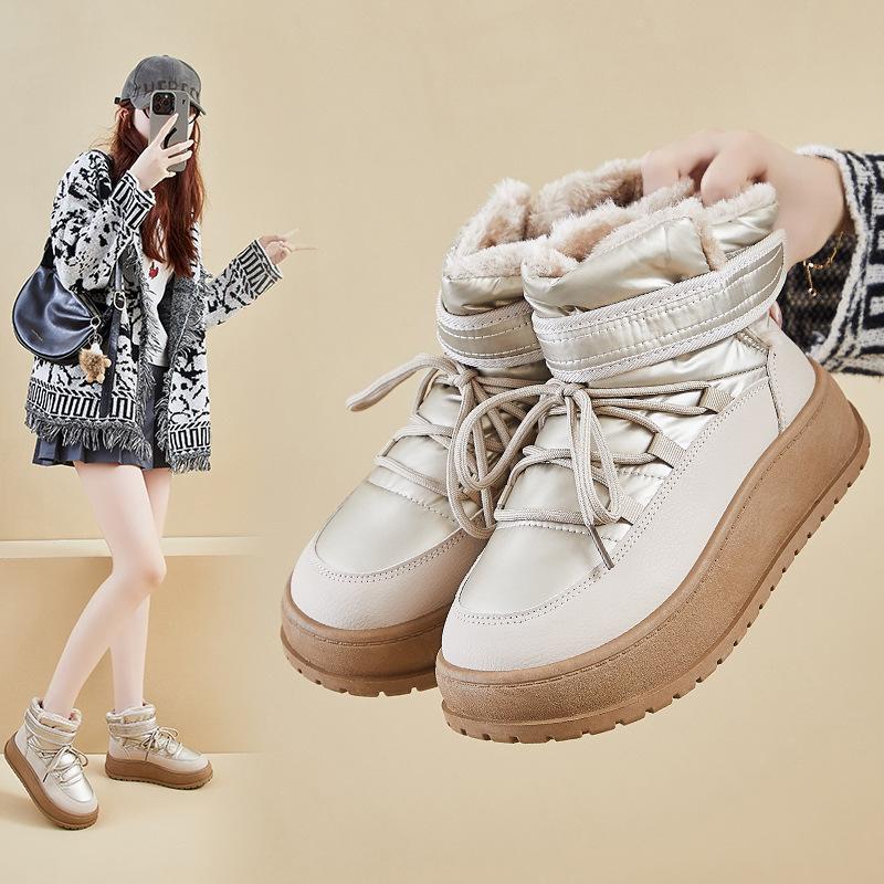 Winter Warm Snow Boots for Women Non-Slip Chunky Platform Sneakers With Faux Fur Lined Lace-Up Tennis Walking Shoes Women's Comfortable Short Booties — günstig online bei Joom kaufen