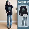 Umstandsmode 2025 Herbst/Winter Fashion Bauchbedeckendes Sweatshirt & Jeans Zweiteiler