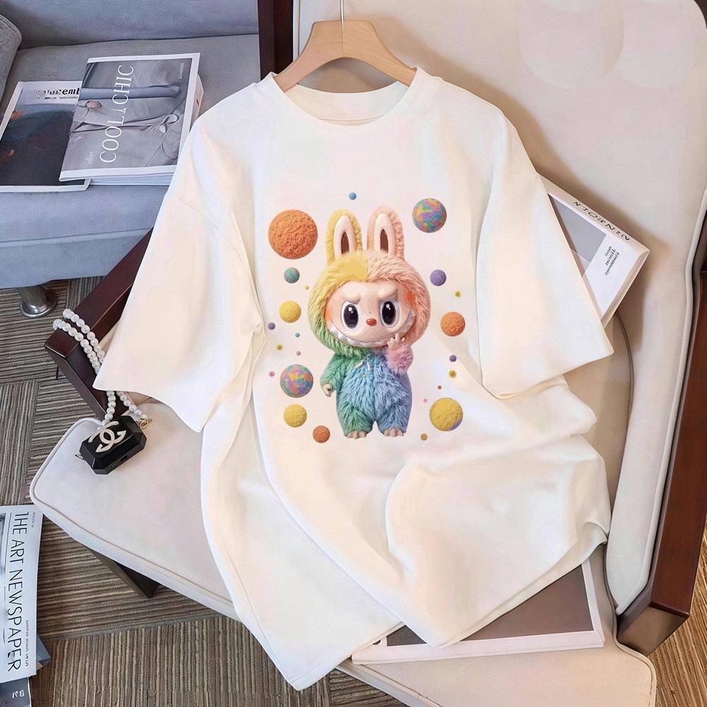 Labubu short sleeved T-shirt, suitable for daily wear. Korean style design. Cartoon patterns and loose styling
