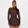 2025 Europäisch-Amerikanischer Stil Netz-Langarm-Jumpsuit & Trägerkleid Set — günstig online bei Joom kaufen