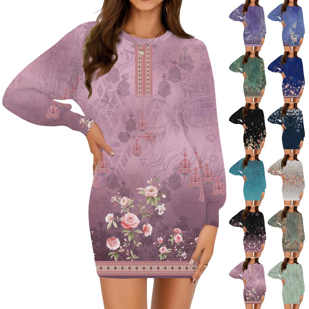 Damenmode Lässiges Rundhals Langarmkleid — günstig online bei Joom kaufen