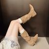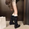 - Herbst und Winter 2025 neue große Größe erhöhte Retro-Fransen gestapelte kleine kurze Stiefel Damen runde Spitze mittellanger Schaft Falten Martin Stiefel