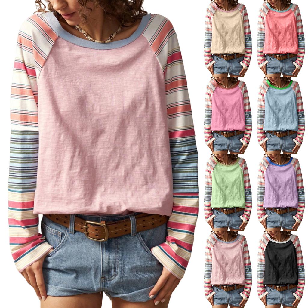 Modisches und elegantes Damen-Top mit Rundhalsausschnitt und langen Ärmeln, gestreift in verschiedenen Farben. — günstig online bei Joom kaufen