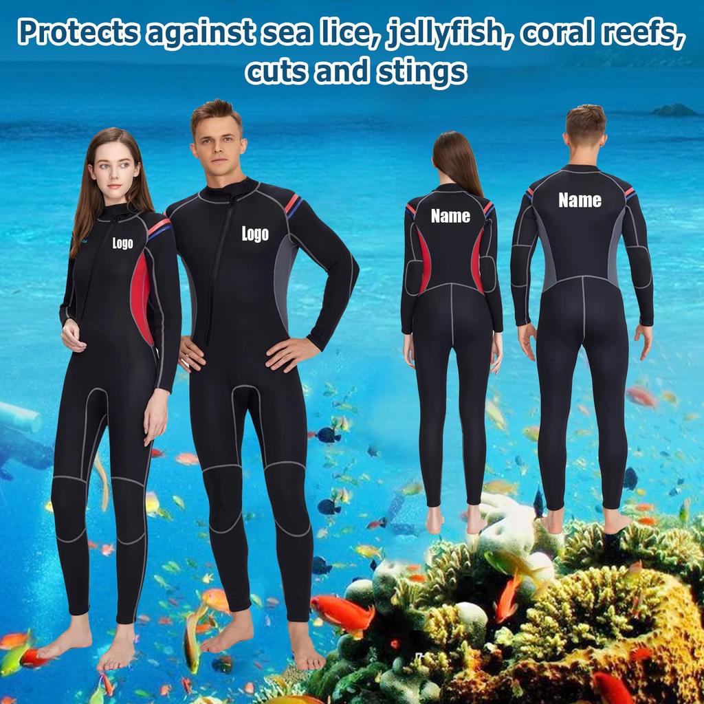 Maßgeschneiderter einteiliger Neoprenanzug 3MM für Paare, langärmliger Voll-Tauchanzug, warm, Sonnen-Quallen-Anzug zum Surfen, Schwimmen