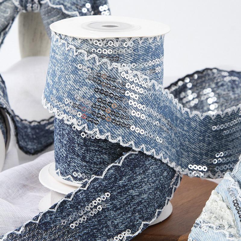 4cmx10Yards Denim Shiny Sequin Tassel Design Gift Wrapping DIY Materials Scrapbooking 1 Roll