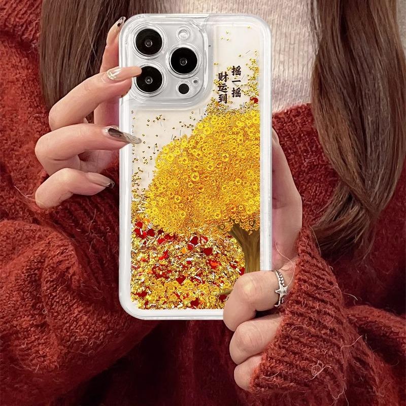 Shake Money Tree Fließsandhülle für Apple 16pro Handyhülle für IPhone 15/14 Premium Sense 13p Glück 12/11