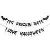 Halloween Glitter Paper Latte Flower Halloween Black Bat Flag Banner Custom Glitter Flag