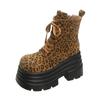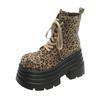 Mode 10CM Hohe Plateau Damen Stiefeletten Leopard Absatz Motorradstiefel Klobige Schnür-Sneakers Trend Winter Goth Kurze Damenstiefel