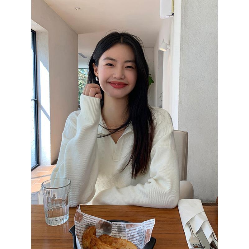 Light grade soft waxy inner lapel olo shirt knitted sweater women's autumn lazy and thin high-end bottoming top — günstig online bei Joom kaufen