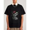 Weißes T-Shirt mit Totenkopf- und Rosendesign für Freizeitkleidung — günstig online bei Joom kaufen