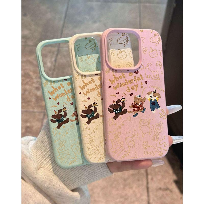 Drei Glückliche Welpen Litschi-Muster für IPhone15/16promax Handyhülle für Apple13/13/12