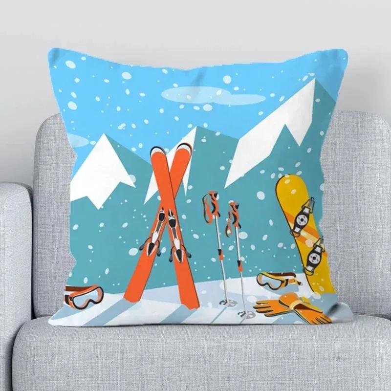 Skigebiet Ski Requisiten Bedruckte Dekoration Bürodekoration Kissenbezug Heim Kissenbezug Quadratisch