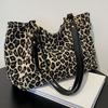 Damen Leo-Print Tragetasche Große Kapazität Umhängetasche Wintermode Corduroy Handtasche