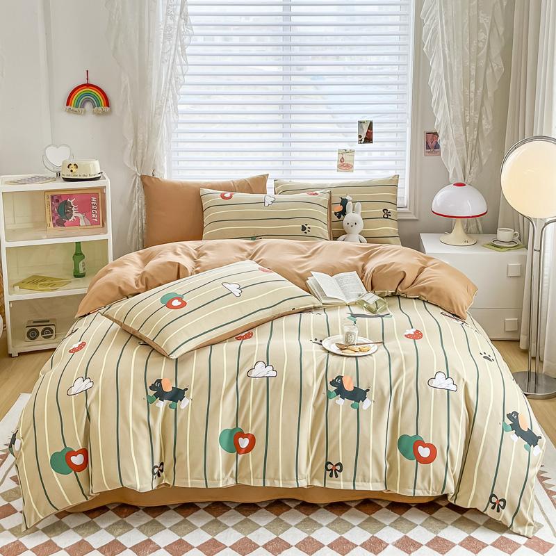 4Pcs Cartoon Black Dog Duvet Cover Set Khaki Striped Bedding With 1 Bed Sheet 2 Pillowcases Bedroom Love Print Comforter Cover — günstig online bei Joom kaufen
