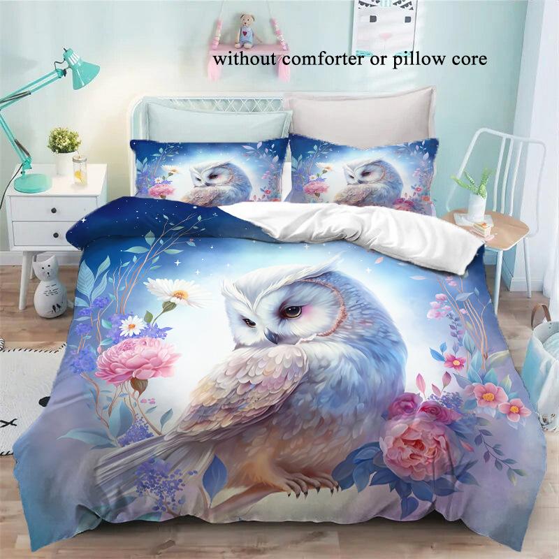 Eule 3D Digitaldruck Dreiteiliges Set Hautfreundlich Atmungsaktiv Bettbezug Studentenwohnheim Bettwäsche