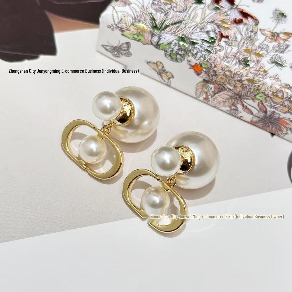 Elegante minimalistische Ohrstecker aus 925er Silber mit Perlen und D-Buchstaben-Design — günstig online bei Joom kaufen