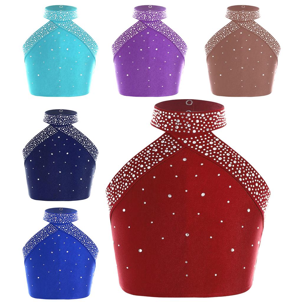 Girls Halter Neck Dance Top Sparkly Rhinestones Vest Sleeveless Backless Cross Back Design Stage Top — günstig online bei Joom kaufen