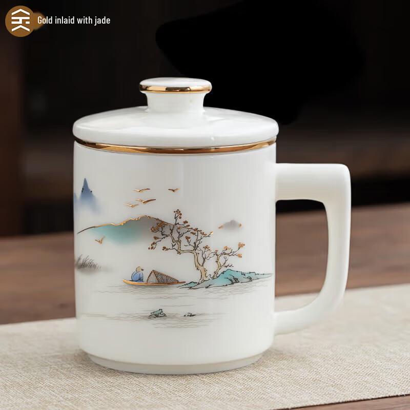 Gold-Inlaid Ceramic Tea Mug Set with Infuser