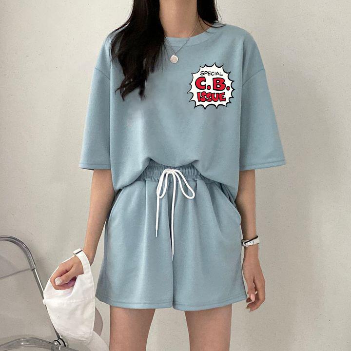 Women summer Casual Sports Loose Short Sleeve Top & Shorts Letter Printed Cotton Outfit Two Piece Clothes Set — günstig online bei Joom kaufen