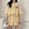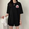 Women summer Casual Sports Loose Short Sleeve Top & Shorts Letter Printed Cotton Outfit Two Piece Clothes Set