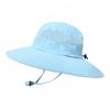 Unisex Sommer Outdoor 12CM Breite Krempe Fischerhut Atmungsaktives Mesh Angelhut Sonnenschutz Panama Hut Winddichtes Band Wanderhut Neu