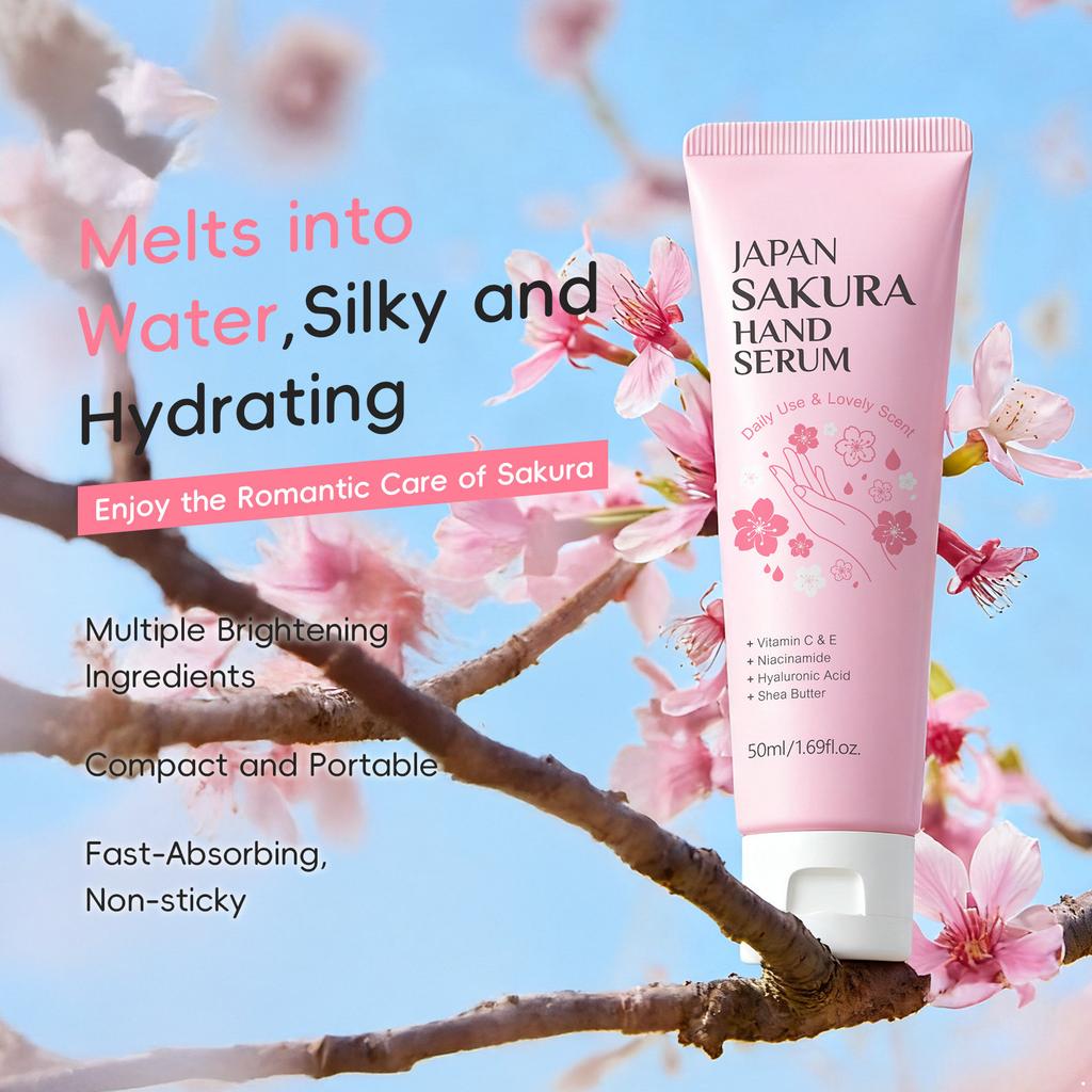 Reisegröße Sakura-Duftendes Handserum - Nährender Feuchtigkeitsspender für trockene Hände, Leichte Creme für den Winter und die tägliche Pflege